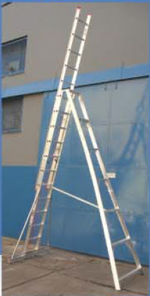 Escalera de aluminio tipo tijera extensible.