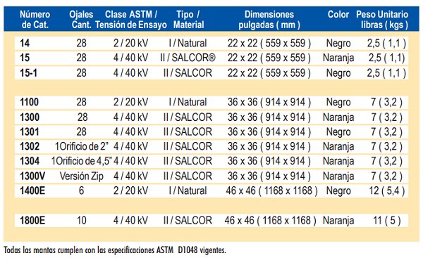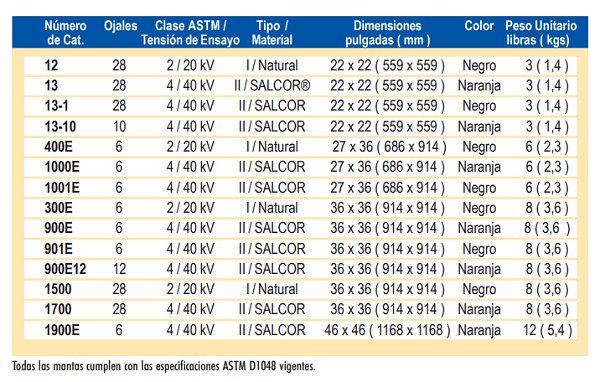 Mantas dieléctricas flexibles para cubrir formas irregulares, las mantas aislantes son tipicamente utilizadas en combinacion con cobertores, fabricadas bajo especificacion ASTM D-1048.